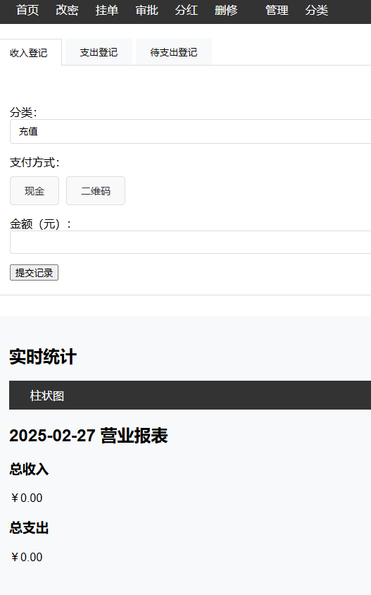 - 自定义分类:用户可根据业务需求,自行增减并命名收支分类(如“充值”、“开台”、“进货”等)。